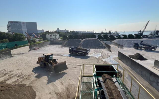材料の流通のみならず、材料同士を適切な割合で混ぜ合わせる細骨材混合事業を行っています。